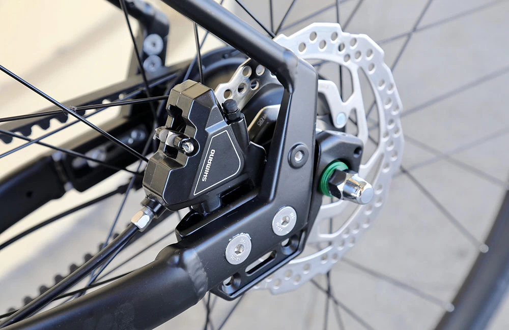 - Frein arrière: Shimano U300 Flat-Mount hydraulique – 160mm Rotor