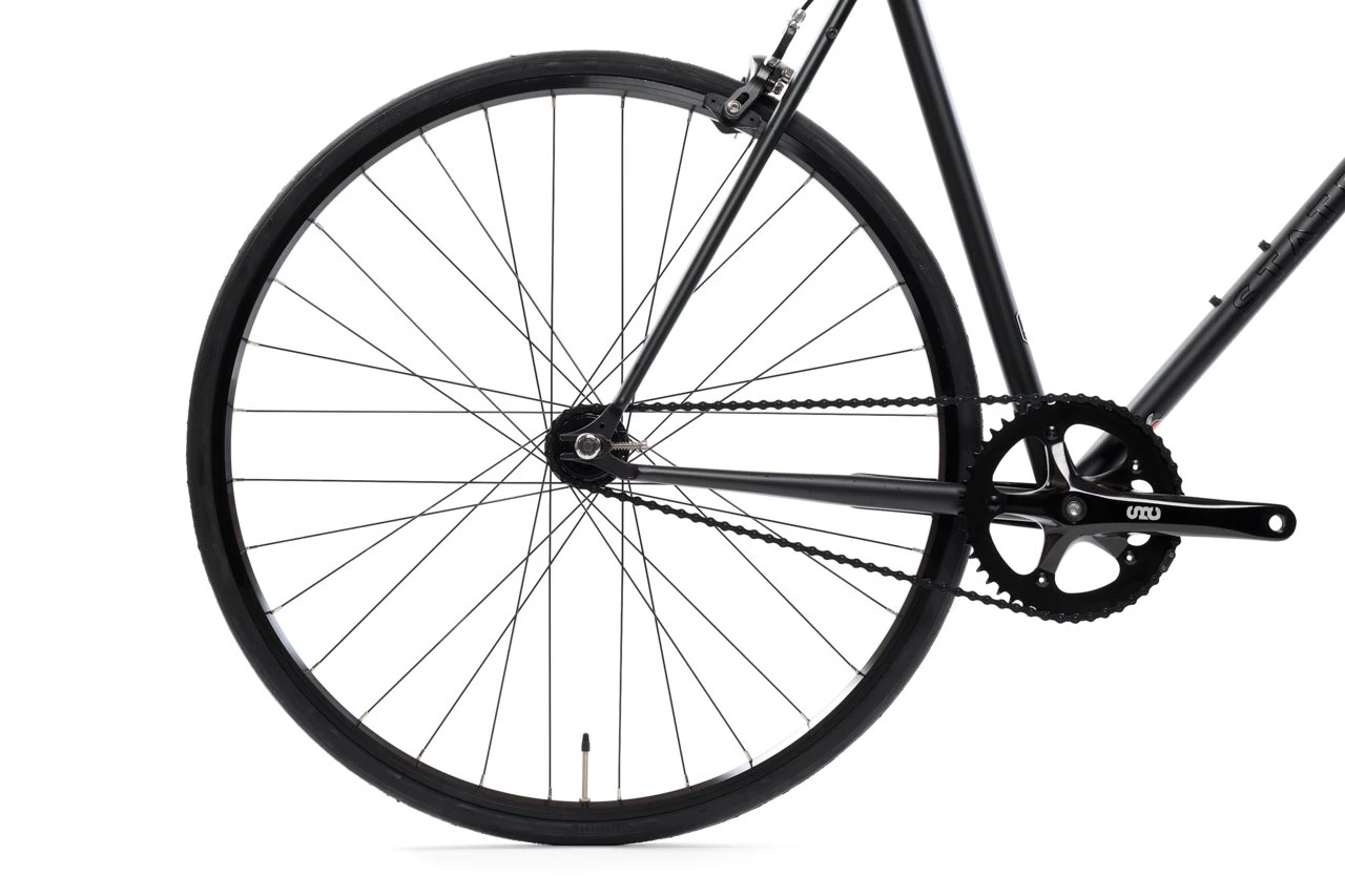 - Moyeux : Flip Flop monté avec un pignon fixe de 16 dents et une roue libre de 16 dents.